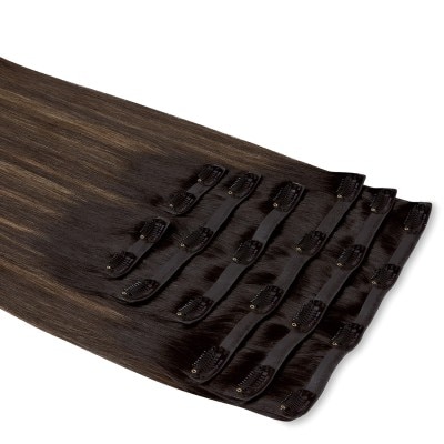 Experience the most natural-looking clip-in extensions with Beauty Works x Huda. This full 7-piece clip-in set of 100% Remy human hair, provides maximum coverage, blending effortlessly with your hair for a flawless finish. These lightweight extensions mimic the scalp for an undetectable, barely-there look. Add volume, fullness, or colour without the weight, perfect for concealing thinning areas or boosting your hair's natural thickness. The extensions allow you to experiment with colour, whether you're adding highlights, lowlights, or a contrasting hue, all without the commitment of dyes. These luxury hair enhancements deliver an instant transformation with easy at-home installation and removal in minutes. Experience a “push-up effect” that mimics natural hair, with colour-coded clips and a silicone layer to protect your hair from damage.