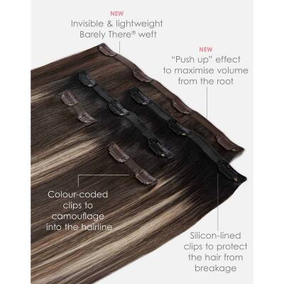 Includes 2 x 3-clip wefts for balanced coverage and volume. Create, customise and elevate your style with Barely There® Mix &
