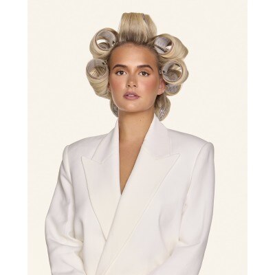 For best results, apply to dry hair immediately after blow-drying while still warm, divide into roller-sized sections, roll smoothly from ends to roots with even tension, and clip if needed. Use a hairdryer on low speed and high