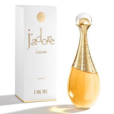 Spray J'adore Intense on pulse points − neck and wrists.