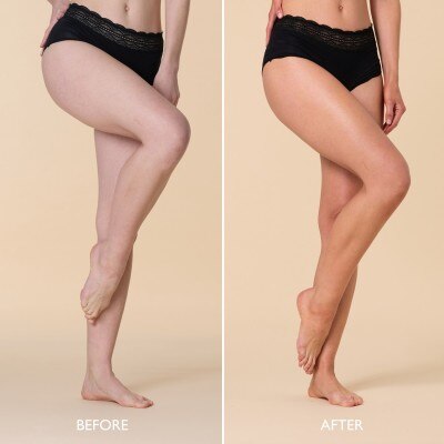 Step 1 - Apply using your hands, in smooth, sweeping motions and rub in thoroughly Step 2 - Lightly smooth over dry areas such as hands, elbows, knees and feet. These areas tend to be a bit drier so need less product. Don't apply the cream directly to these areas, but spread onto these areas once you have applied to the rest of the body Step 3 - Wash hands after use particularly between fingers Step 4 - Wait for skin to be touch dry before dressing Top tip – after washing hands use a large make up brush to apply to the back of the hands. Colour develops over 3-4 hours. Use for 1-3 days to achieve your desired glow, the simply top up when you like. Or, if you want a deeper tan more quickly, apply every few hours.