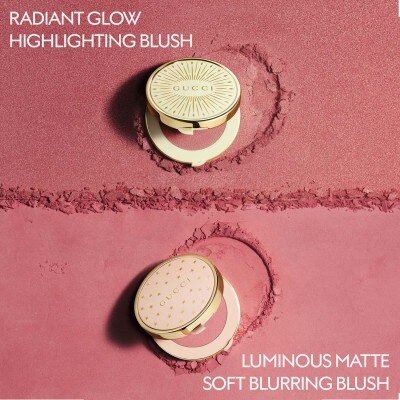 Get the glow with the Gucci Beauty Glow Blush, the next generation of highlighting blush. A long-lasting dewy and pearly glow blush delivered in a silky soft texture that falls between a cream blush and a powder. The lightweight texture blends seamlessly with skin and applies evenly, delivering buildable colour payoff, from subtle to bold. Powered by the Gucci Glow Technology, this formula contains thin pearl particles infused in a breakthrough emollient texture for a healthy-looking, radiant finish. Comfortable, hydrating, and soothing, this Gucci makeup formula feels like a second skin and features sweat, humidity and heat-proof properties. Infused with Black Rose Oil for soothing comfort and Hyaluronic Acid for skin hydration. Available in 6 vibrant, inclusive shades, suitable for all skin tones from fair to deep.