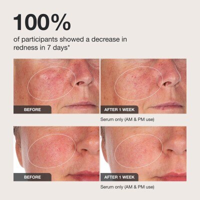 - Redness Repair Barrier Treatment: Use the Redness Repair Barrier Treatment as your serum step, morning and night. Follow with moisturizer, eye cream, and SPF.