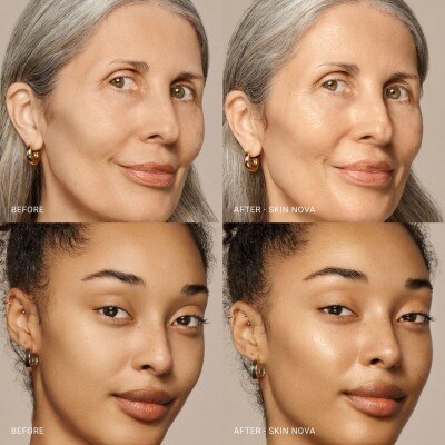 SKIN NOVA - INGREDIENTS: AQUA/WATER/EAU, GLYCERIN, PROPYLENE GLYCOL DICAPRYLATE/DICAPRATE, 1,2-HEXANEDIOL, CAPRYLIC/CAPRIC TRIGLYCERIDE, NIACINAMIDE, HYDROXYETHYL ACRYLATE/SODIUM ACRYLOYLDIMETHYL TAURATE COPOLYMER, MICA, SYNTHETIC FLUORPHLOGOPITE, PROPANEDIOL, ROSA DAMASCENA FLOWER WATER, POLYSORBATE 60, SORBITAN ISOSTEARATE, ORCHID EXTRACT, GLYCERYL ACRYLATE/ACRYLIC ACID COPOLYMER, BUTYLENE GLYCOL, PHENOXYETHANOL, SODIUM PHYTATE, BETA-GLUCAN, CITRUS LIMON (LEMON) PEEL OIL, CITRUS AURANTIUM DULCIS (ORANGE) FLOWER OIL, CANANGA ODORATA FLOWER OIL, CITRUS TANGERINA (TANGERINE) PEEL OIL, THYMUS VULGARIS (THYME) OIL, ROSA DAMASCENA FLOWER OIL, ETHYLHEXYLGLYCERIN, SANTALUM ALBUM (SANDALWOOD) OIL, PYRUS COMMUNIS (PEAR) FRUIT EXTRACT, DEHYDROACETIC ACID, TITANIUM DIOXIDE (CI 77891), IRON OXIDE (CI 77491), LIMONENE, BENZYL SALICYLATE, LINALOOL, BENZYL ALCOHOL.